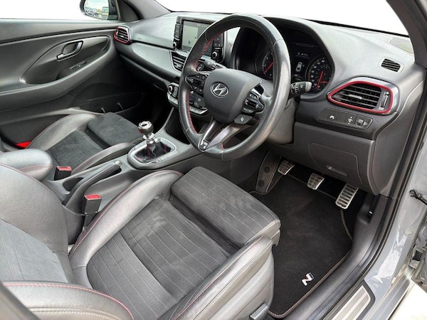 [DriverConvenience]Vertical adjustment rear head restraints 8 touch screen sat nav with TMC, Apple car play/Android Auto, Bluetooth connectivity with voice recognition, Colour driver's information system display, Cruise control + speed limiter, Digital clock, Drive mode buttons, Driver alert system, Driver's supervision instrument cluster with 4.2 LCD display, Emergency stop signalling system, Forward collision warning, Front and rear parking sensors, Lane departure warning system, Lane keep assist, N exclusive sport cluster, N mode button, Parking guidance system, Parking system with rear camera and guidance system, PAS, Performance information display, Rack motor driven power steering, Rev matching system, Roll over sensor, Shift timing indicator, Smartphone wireless charging plate, Supervision cluster with 4.2 TFT display, Trip computer, 1 speed non intermittent rear windscreen wiper, Active variable exhaust system, Auto dimming rear view mirror, Automatic defog system, Automatic front rain sensing wipers, Automatic headlights with dusk sensor, Black door mirrors, Black side sills, Black window surrounds, Body colour door handles, Body coloured bumpers, Bumper accents, Door mirror LED indicator lights, Door mirror puddle lights, Electric adjustable heated door mirrors, Electric folding door mirrors, Electric front and rear windows + anti trap + one touch, Follow me home headlights, Headlamp levelling, Heated rear windscreen with washer, LED brake lights, LED daytime running