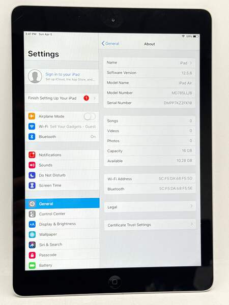 | Model | Apple iPad Air 1st Gen (A1474) |