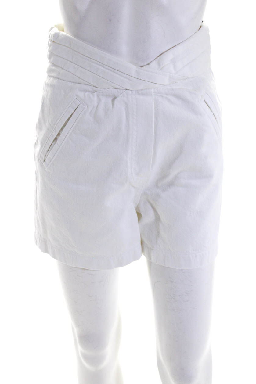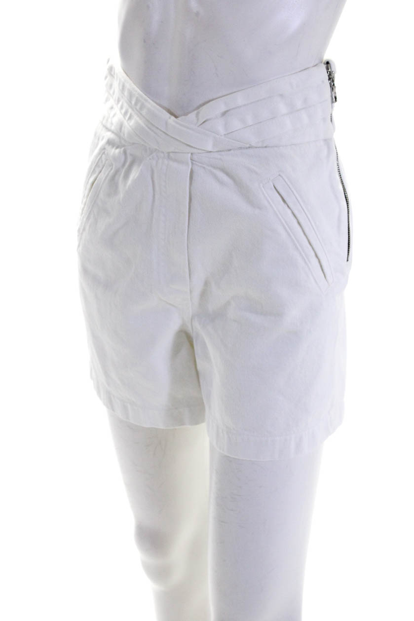 RtA Womens Pleated Zippered High Rise Denim Paperbag Mini Shorts White Size 25