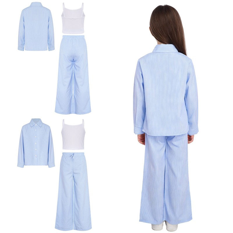This three-piece set is perfect for various dance performances, gymnastics competitions, or just for casual play at home, being a great addition to a young girl’s wardrobe.