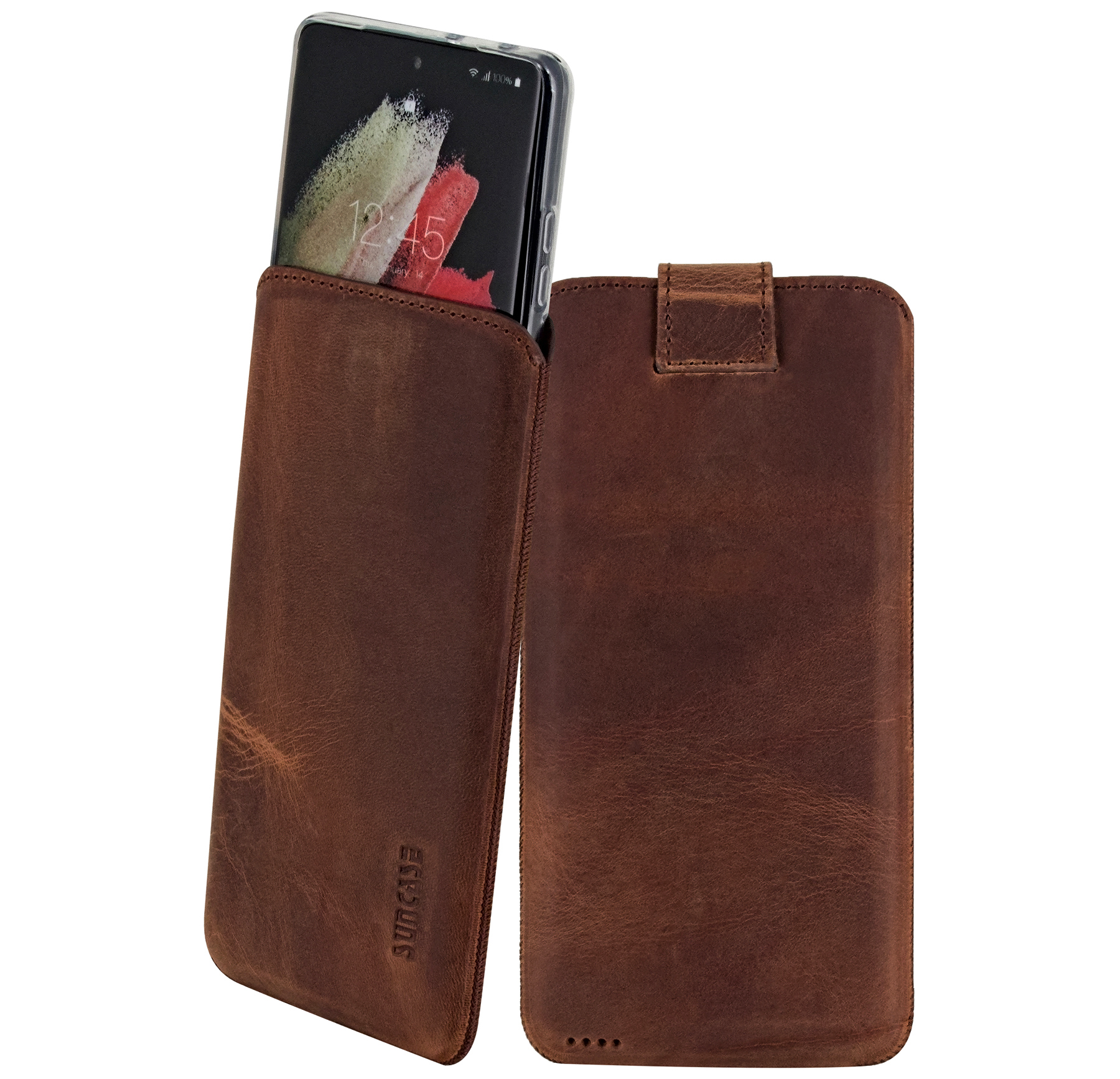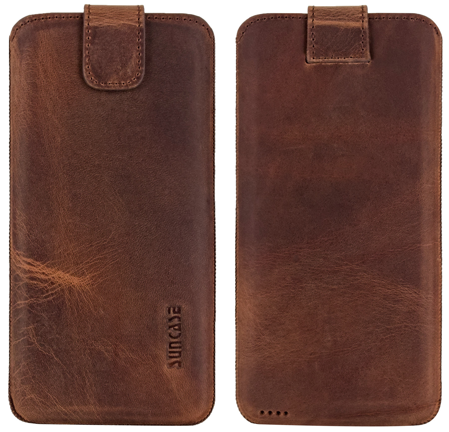 A leather cell phone bag looks particularly noble and of high quality. The best cowhide is processed in this smartphone bag from Suncase.