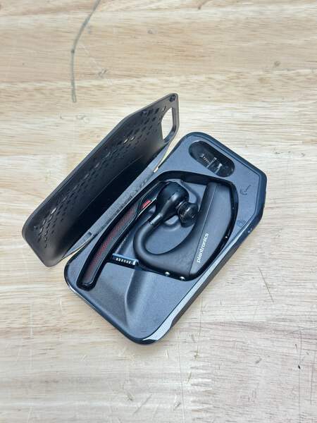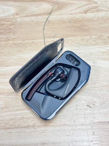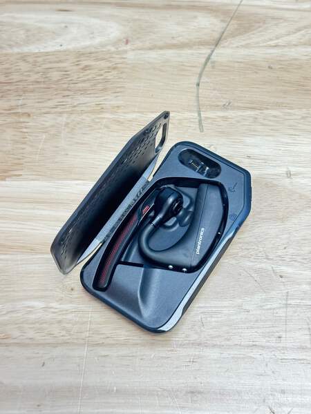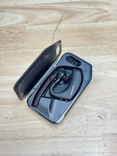 Lot of 6 Plantronics (Poly) wireless Bluetooth mono headsets with charging cases. Designed for professional use such as office calls, remote work, and call center environments.