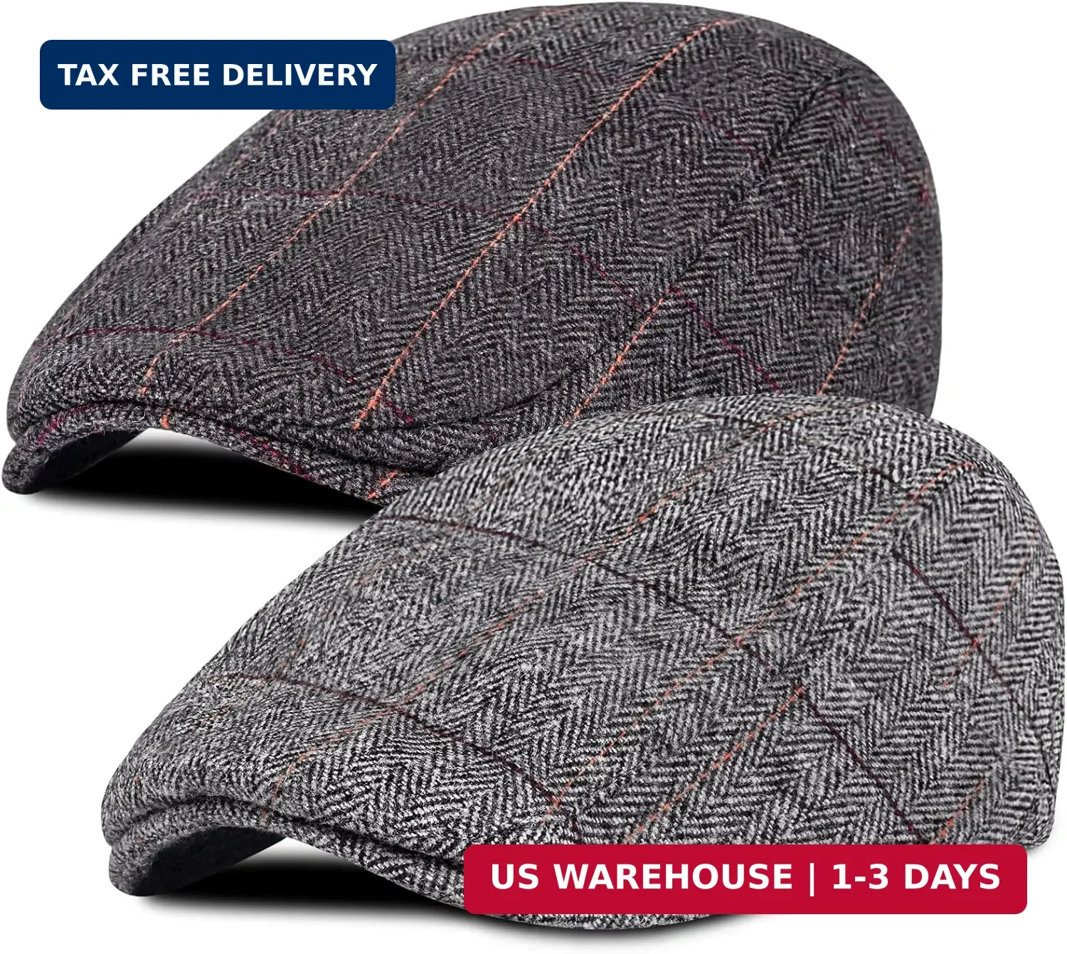 Senker Fashion 2 Pack Newsboy Cap for Men Adjustable Herringbone Tweed Wool Hats