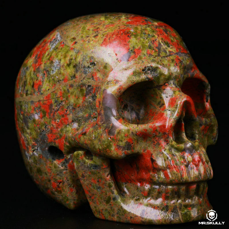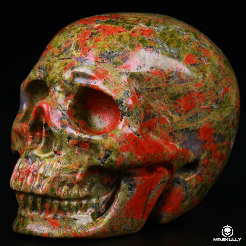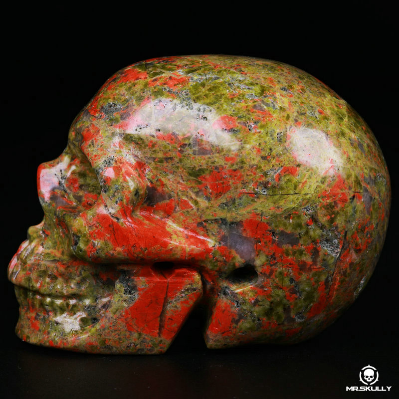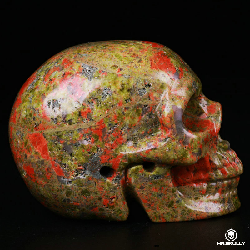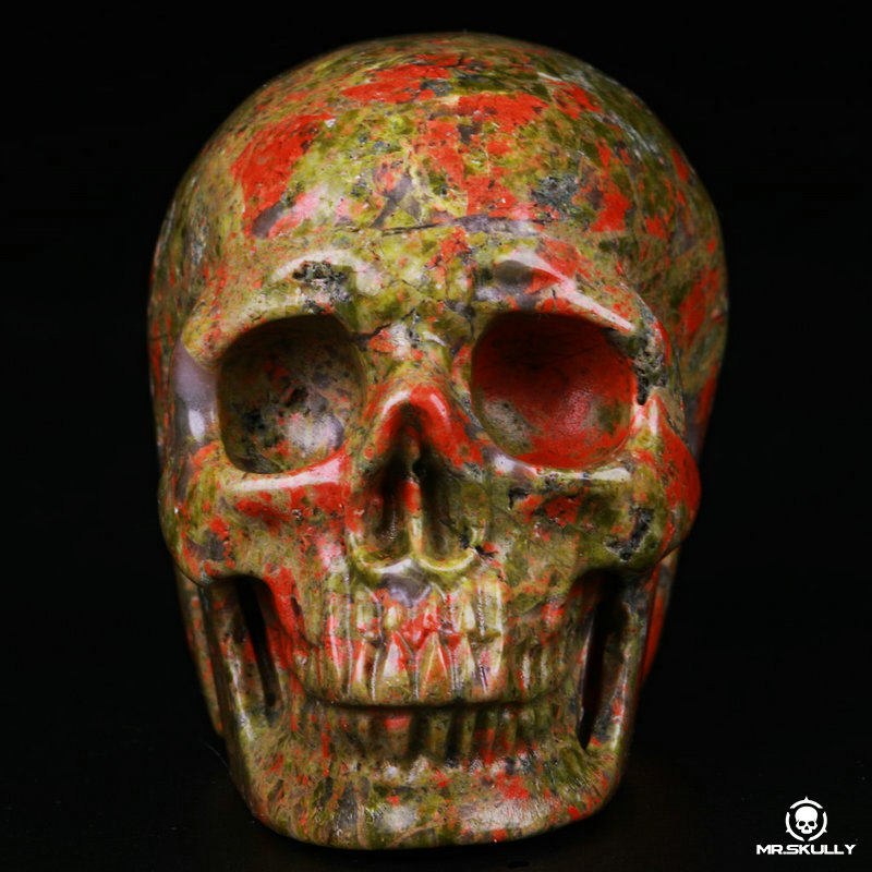 ![]() ![]() 2.0" Pink & Green Unakite Carved Crystal Skull, Realistic, Crystal Healing
