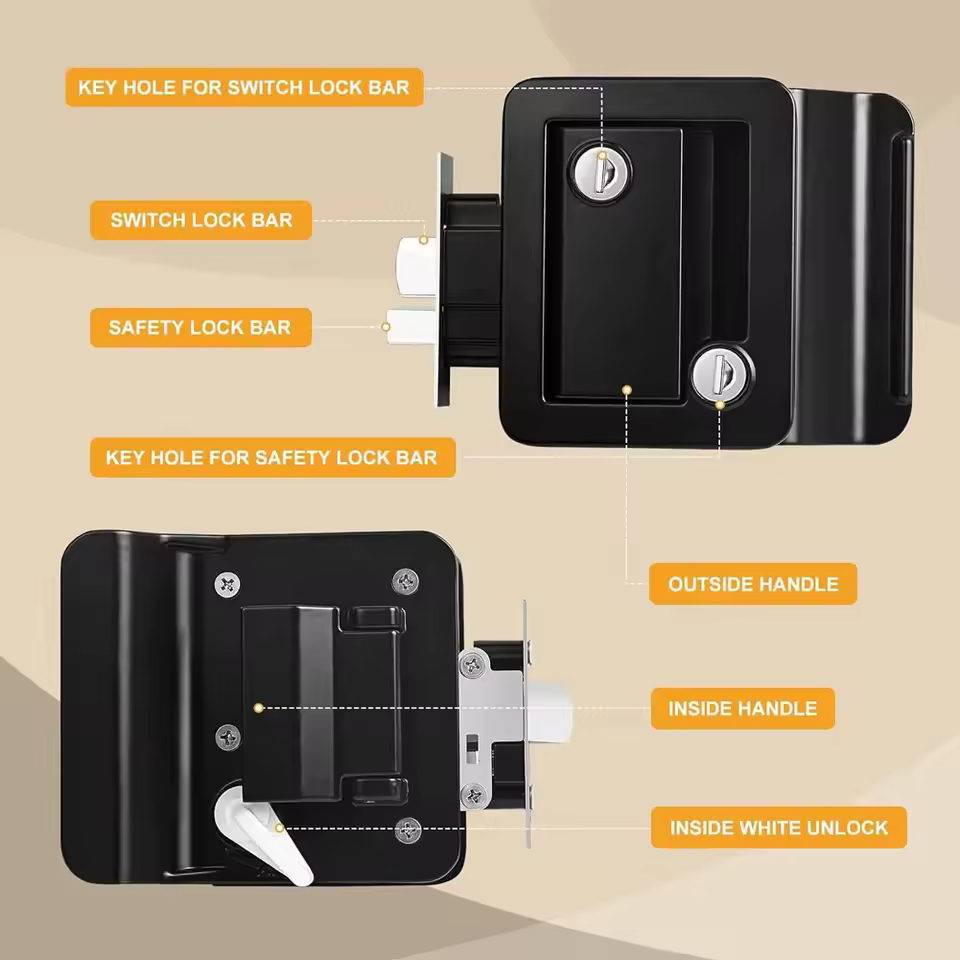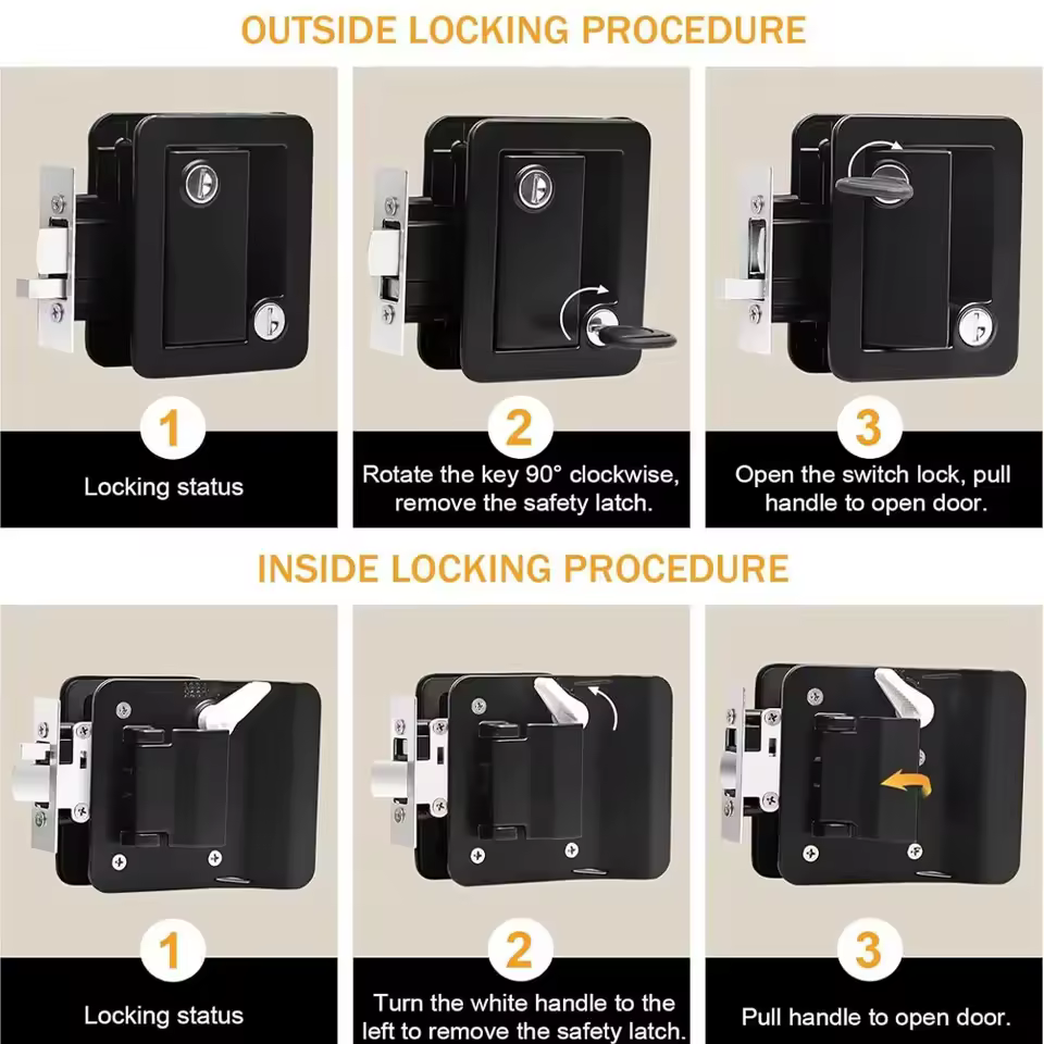 5. Robust Construction: The RV enclosed trailer entry door lock is built to last, featuring a robust construction that withstands the rigors of travel and constant use, ensuring long-term reliability and performance.