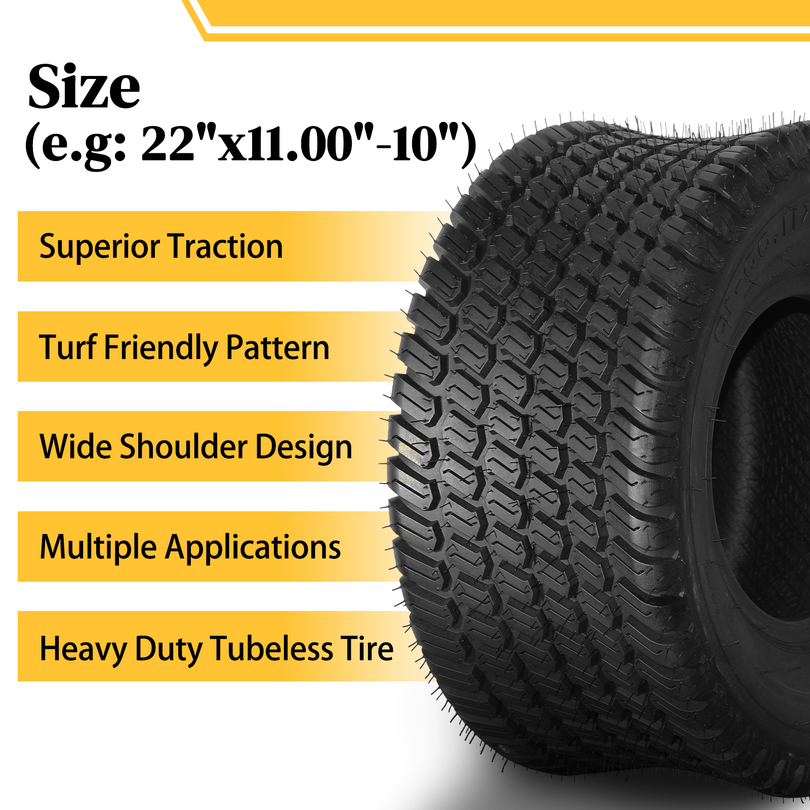 Set of 2 22x11-10 Lawn Mower Tractor Turf Tires 4 Ply Rated 22x11x10 Tubeless
