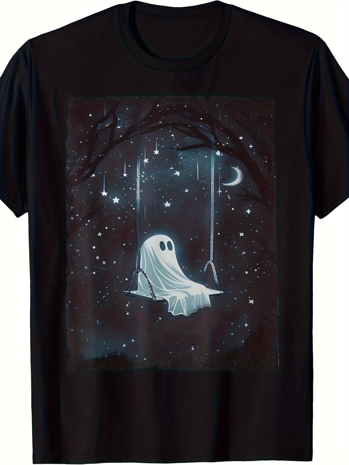 Men'S & Women'S Big & Tall Vintage Gothic Halloween T-Shirt - Cute Spooky on Swing with Bats & Full Design, 100% Heavyweight 220gsm, All-Season Fit Round Neck Short Sleeve Tee for Adults, Unisex Casual & Themed Party Outfits, Spooky Season Apparel