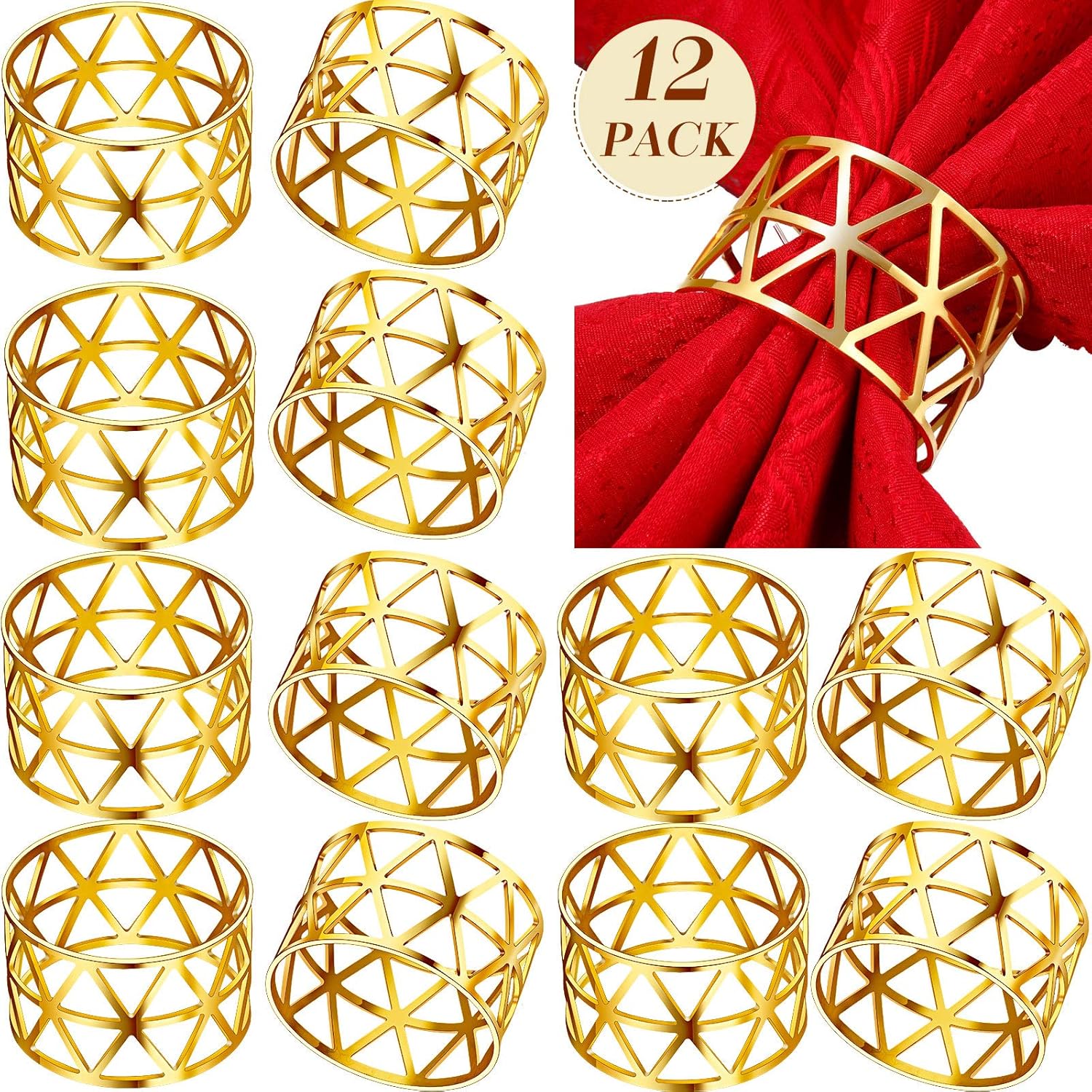 Elegant table decor: paa es with set of 12 pieces napkin rings that are approx. 1.77 inch/ 4.5 cm in dieter and 1.18 inch/ 3 cm in width,suitable for most napkins; These elegant and delicate decorats will light up your monotonous napkins,you will receive many pliments at the party