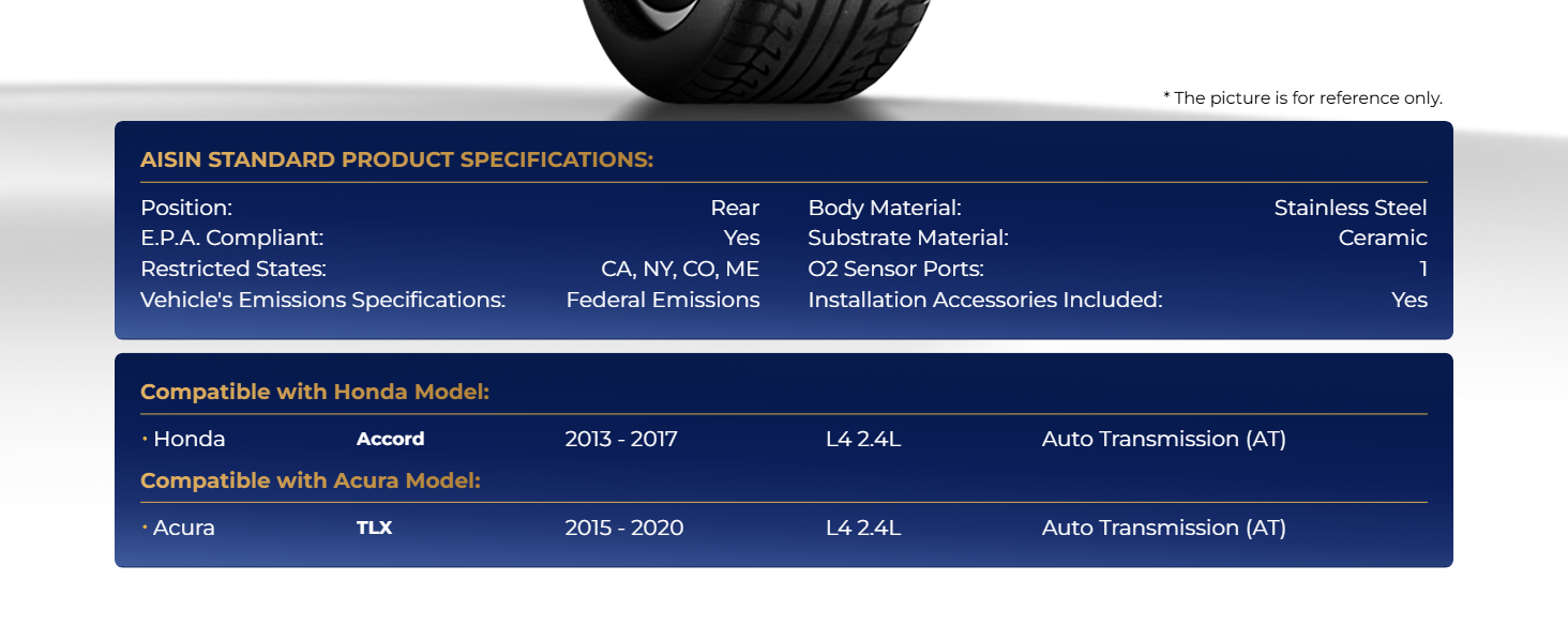 AISIN Rear Catalytic Converter for Honda Accord Acura TLX 2013-2020 L4 2.4L