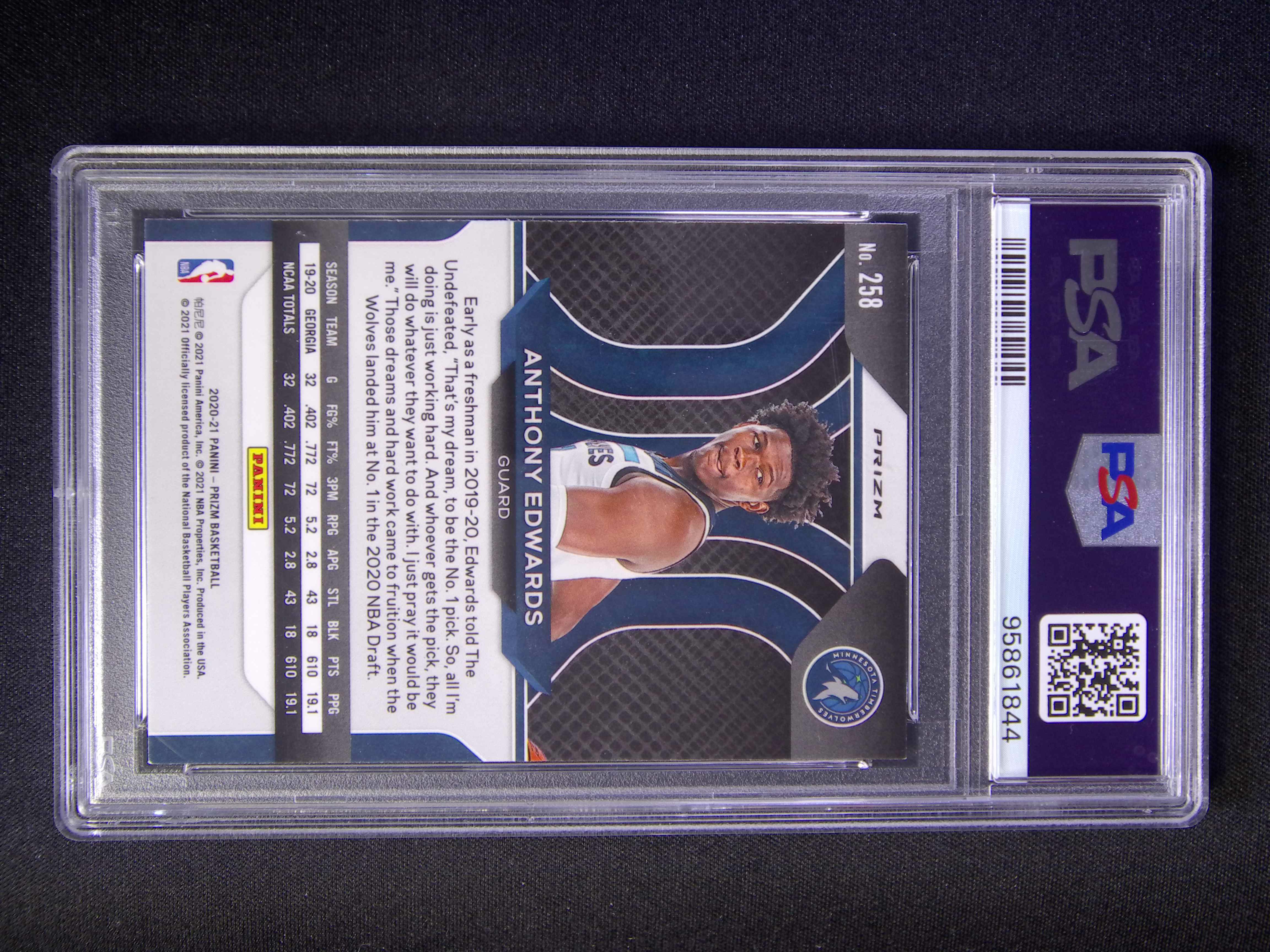 2020-21 Panini Prizm Anthony Edwards #258 RC Rookie Silver PSA 9