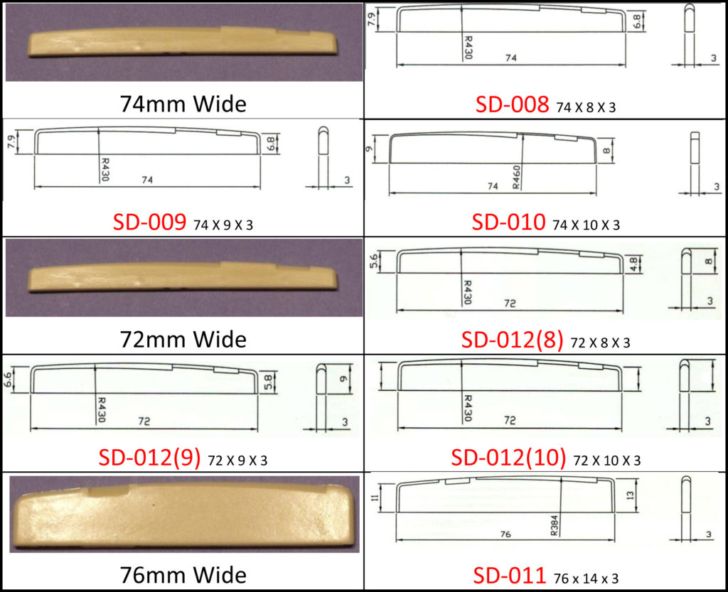 Acoustic Classical Folk guitar bridge saddle.