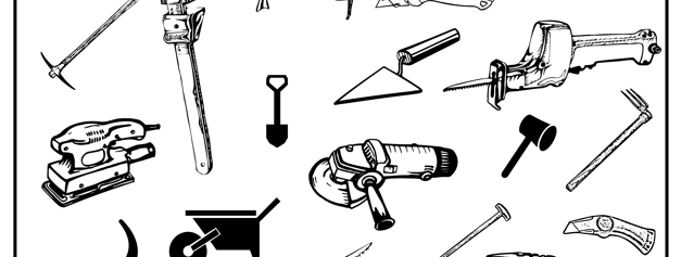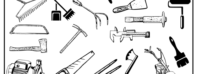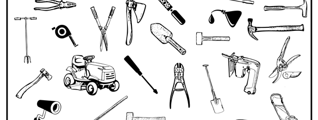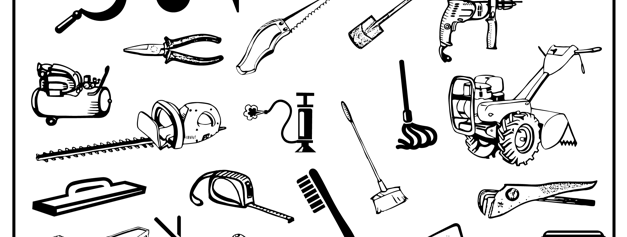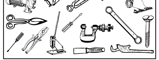 saws, wrenches, drills, pliers, shovels, trowels, vice