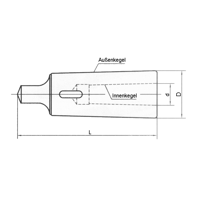Rundlaufgenauigkeit. Mit Austreiblappen am Ende des Schaftes sowie einer Öffnung