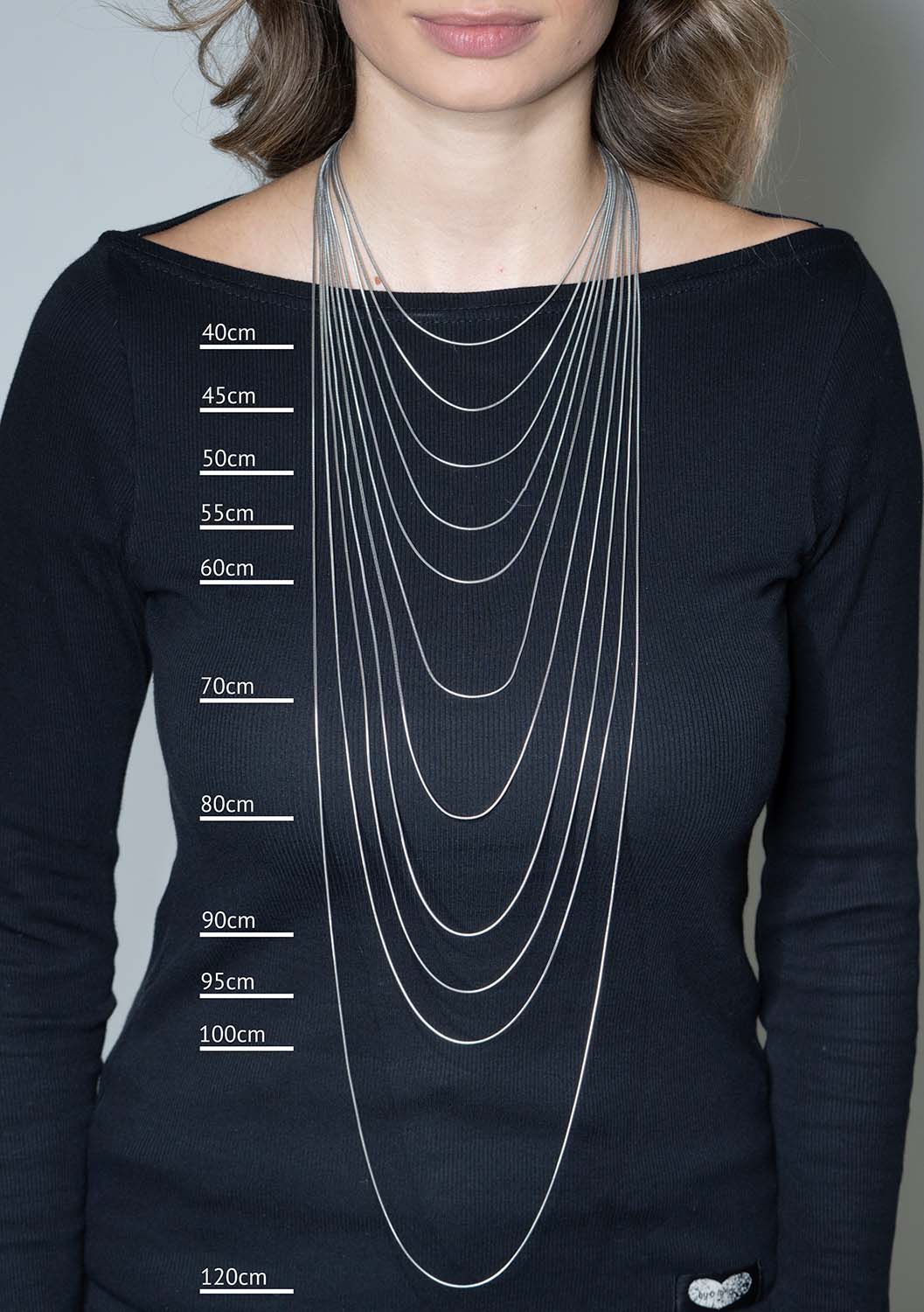 - Kettenlänge: erhältlich in 11 verschiedenen Längen in 40/45/50/55/50/60/70/80/90/95/100/120cm