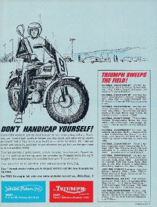 1965 Triumph full model line brochure 4 page catalog Bonneville T120TT, street and Mountain Tiger Cub, Trophy and Tiger models, and more. Removed from brand new unsold magazines in 1965 to be used as brochures by a dealer, and they remain in extremely nice condition.Add me to your Favorite Sellers Visit My eBay Store eBay shipping calculator is not very accurate, but I will adjust actual shipping charges to your best advantage. No parts here for these bikes except what is listed in my eBay store. Please choose your parts carefully. No returns. Thank you. Please check my e-Bay store and click on the Brand Category that interests you so that you do not have to scroll through hundreds of listings. Ship many items of the same weight class for only one shipping charge. If the system charges you for each, then I refund the excess when paid through PayPal. This listing was created through Auctiva.com because it is safer, faster, and less expensive than the normal listing method.