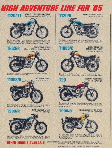 | 1965 Triumph full model line brochure 4 page catalog Bonneville T120TT, Cub,T100 |