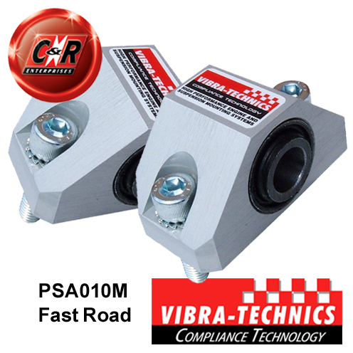 Vibratechnics Uprated Engine MountsVibra-Technics products are designed specifically for high performance applications where a direct replacement for the standard mount is required along with a much higher level of engine control to cope with higher engine outputs and higher road inputs caused by fast driving. The Fast Road mounts give significant improvements in ride and handling without adversely affecting vibration isolation. The competition mounts can also eliminate clearance problems with strut braces, exhaust systems, body panels etc. They improve handling whilst still giving vibration isolation at high engine speeds.