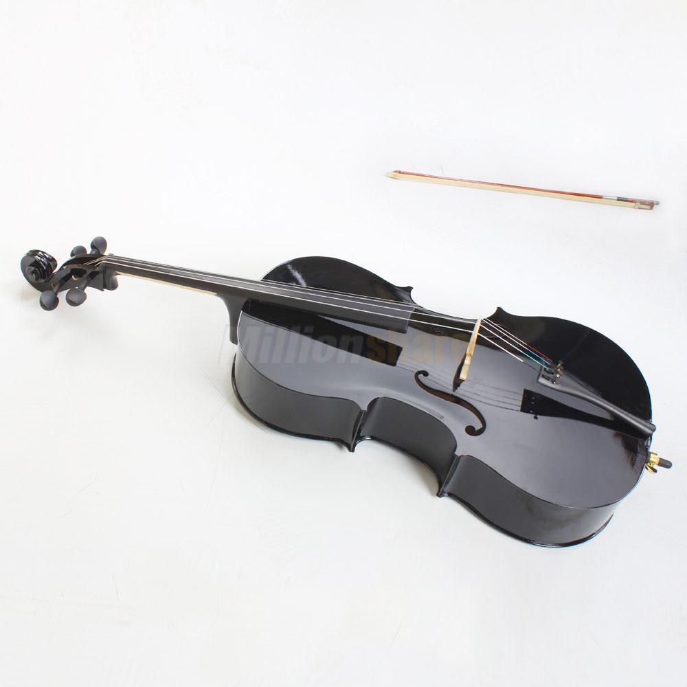 1 x 4/4 Black Wood Cello+Bag+Bow+Rosin+Bridge