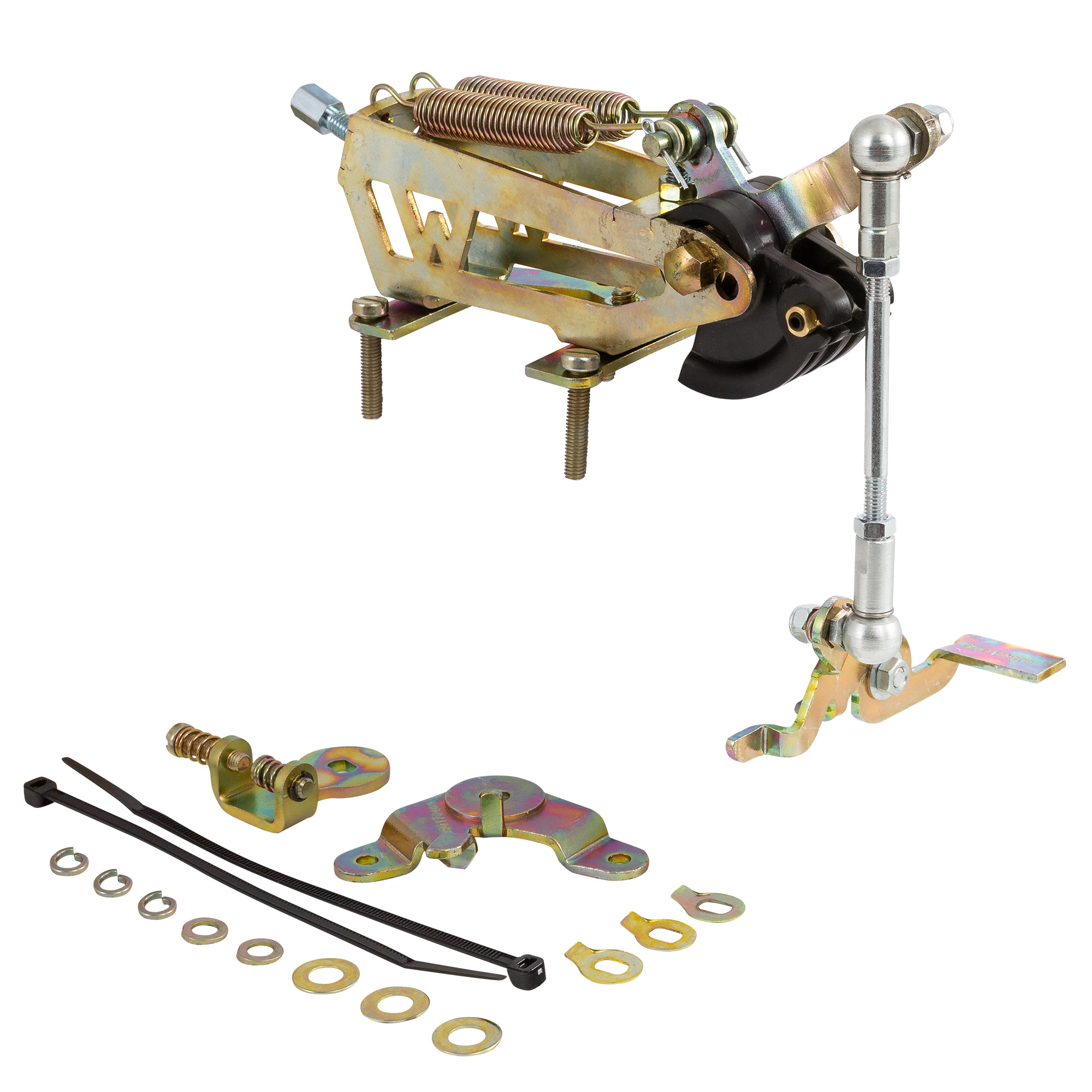 These high quality throttle linkage kits from Weber are specifically designed for use with single or twin sidedraught DCOE or DCO/SP type carburettors. The kit contains all linkages, return springs,  carburettor throttle levers (male and female) and all necessary mounting hardware.