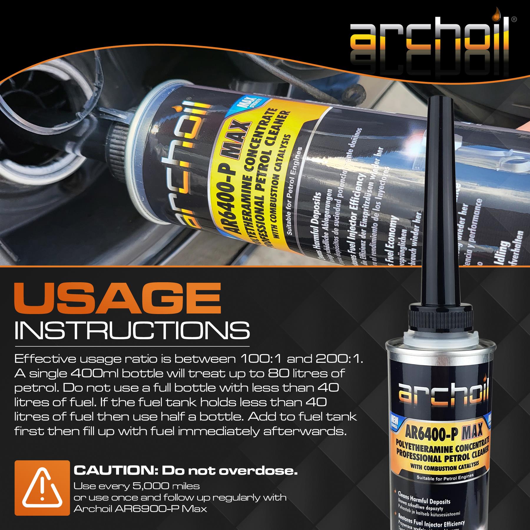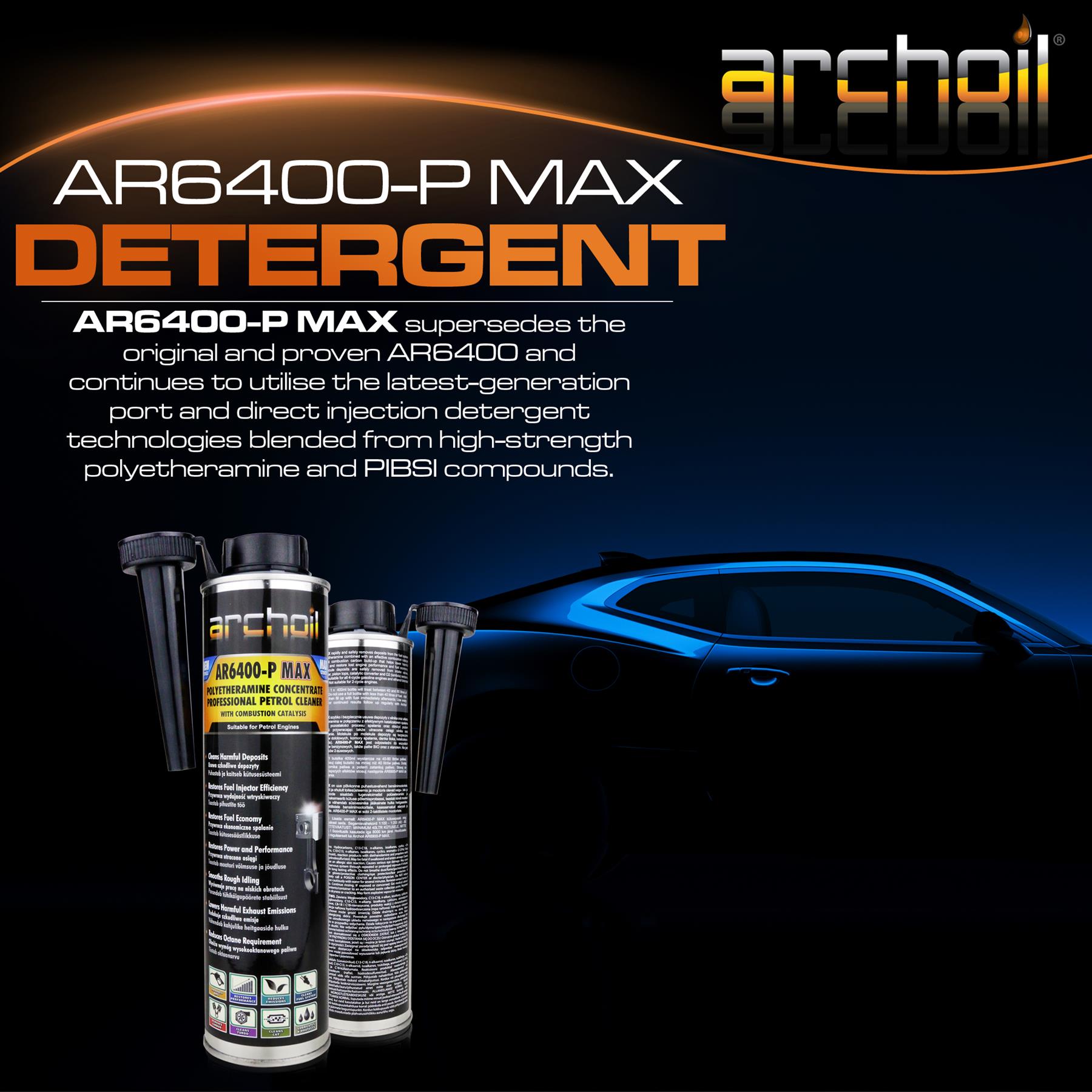 AR6400-P MAX supersedes the original and proven AR6400 and continues to utilise the latest-generation port and direct injection detergent technologies blended from high-strength polyetheramine and PIBSI compounds.