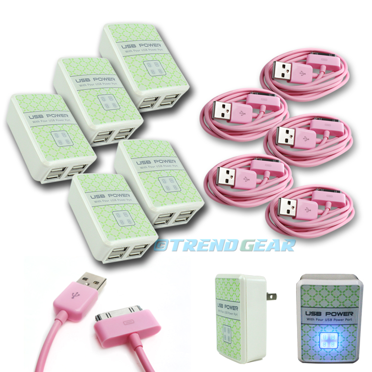 Package includes: 5x 4 USB Ports Power Adapters + 5x 30-pin to USB Cables
