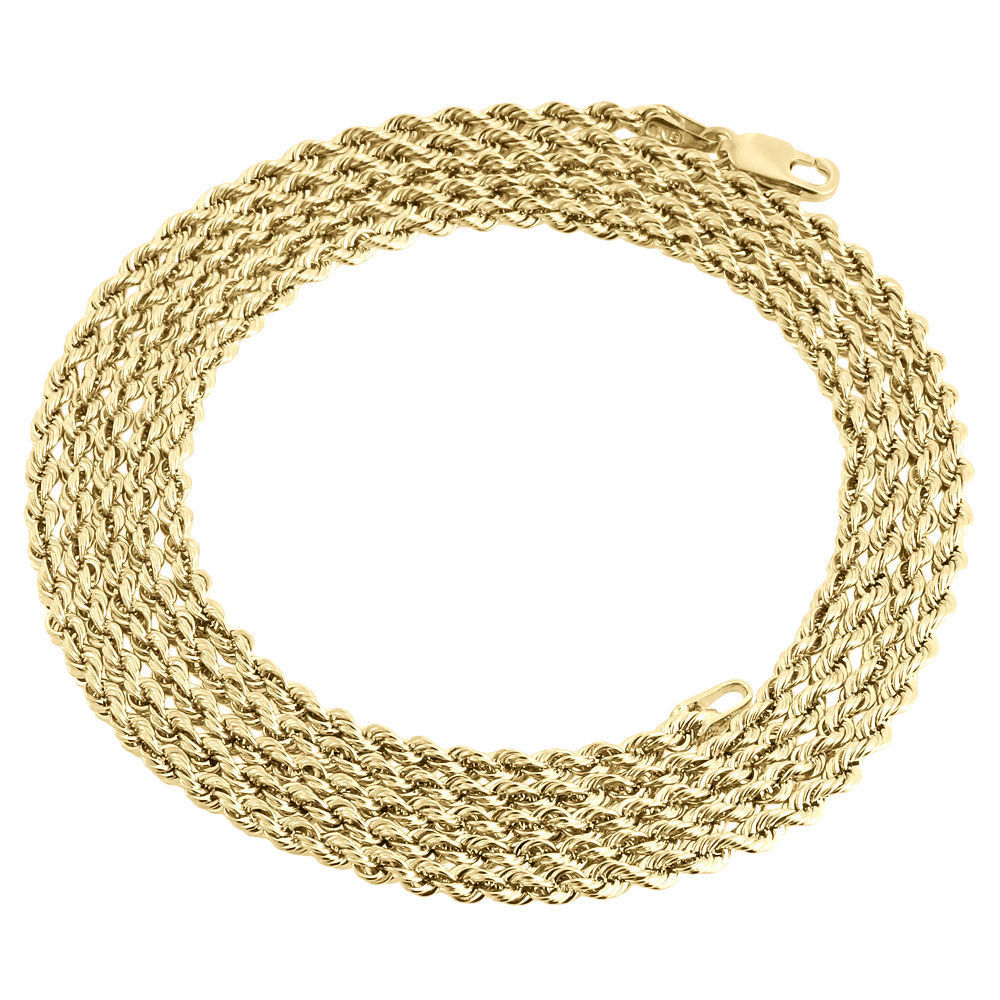 This Yellow Gold Hollow Rope Chain is presented in 10K lustrous gold . Finished with a professional bright polish for extra shine. This chain 2mm wide and available in 16 thru 30 inches . The starting weight is approximately 2.4 grams. This 10K hollow gold rope chain is available in 10K yellow gold and in different chain lengths. This chain is ideal for wearing with a pendant or by itself. Great chain for your pendant to stand out. The chain has a secure lobster clasp so it is easy to put on and take off.