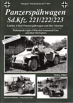 Markus Zöllner: Panzerspähwagen Sd.Kfz. 221/222/223 Leichte 4-Rad Panzerspähwagen und ihre Abarten Wehrmacht Light 4-Wheeled Armoured Cars and their Derivatives in englischer und deutscher Sprache (bilingual English-German) Aus der Reihe: Tankograd Wehrmacht Special, No 4014 | |