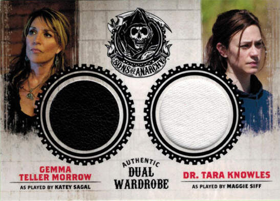 This costume wardrobe card features an authentic pieces of wardrobe worn by Katey Sagal as Gemma Teller Morrow and Maggie Siff as Dr. Tara Knowles.