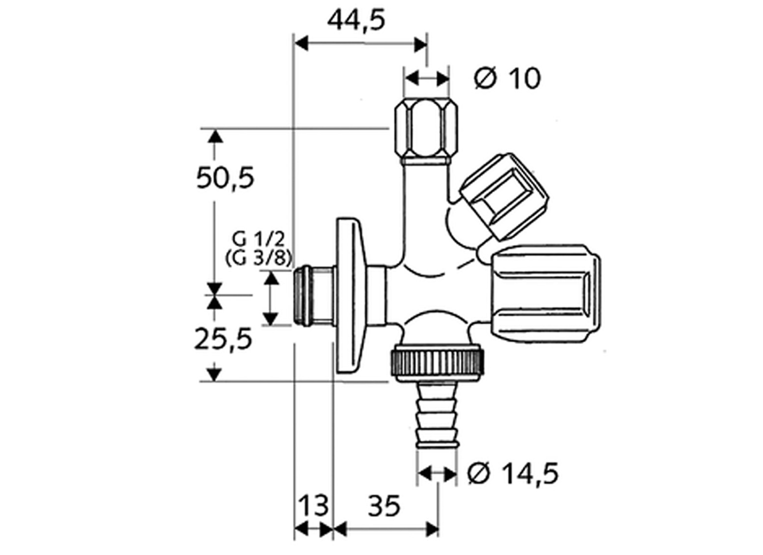 • Schell Comfort Kombi-Eckventil 1/2" Aussengewinde selbstdichtend