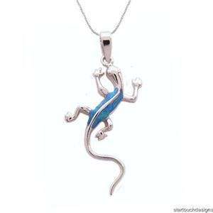 New .925 Sterling Silver Created Opal Lizard Pendant.