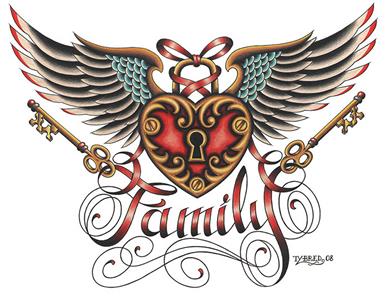 Family by Tyler Bredeweg Tattoo Art Print Vintage Heart Wings Lock and Key