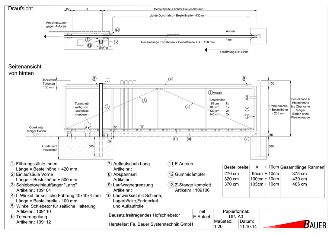 Sofort Kauf Schiebetore Hoftore Bausatz freitragend Einfahrtsschiebetor Bodengeführt Tore
