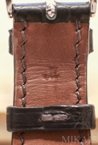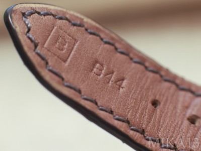 BRACELET/BAND: GREY LEATHER STRAP WITN ORIGINAL TANG BUCKLE.