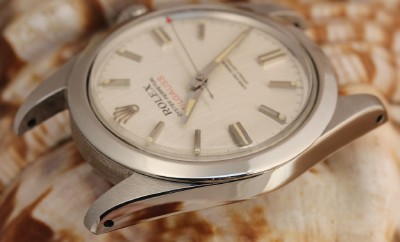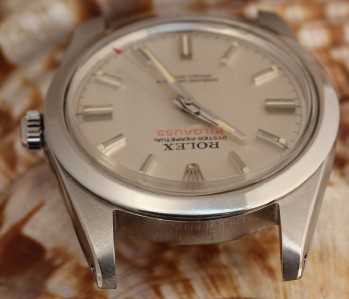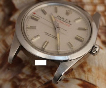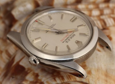 CASE: OYSTER 40MM STAINLESS STEEL CASE WITH FIXED BEZEL, TRIPLOCK CROWN. THE CASE HAS HARDLY BEEN TOUCHED AND 1019 IS CLEARLY SEEN AT 12:00 O'CLOCKANDA SERIAL NUMBER IS INTACT AND ALL DIGITS VISIBLE AT 6:00 O'CLOCK! SCREW DOWN BACK PROPERLY HALLMARKED "1019" INSIDE AND DATED 2/70. SCREW DOWN BACK DESIGN FOR WATER-RESISTANT SEAL.