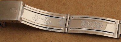 ORIGINAL FOLDED STAINLESS ROLEX BRACELET 580 END PIECES 7836 BRACELET - FULL LENGTH AND PROPERLY HALLMARKED. CLASP IS DATED 1-71
