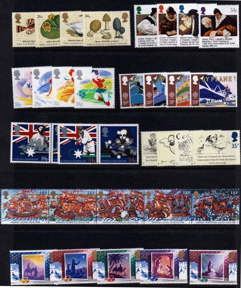 GB GREAT BRITAIN 1988 Complete Commemorative Year, 8 sets Mint NH