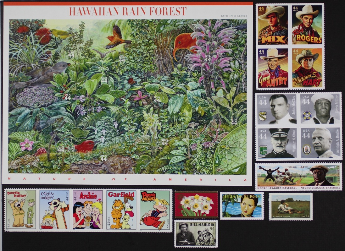 USA 2010 Commemorative Year Set made up of 68 stamps including, Hawaiian Rain Forest, and Abstract Expressionists, sheets . Please look at the scans to see what stamps are included in this year set. All stamps Mint NH.