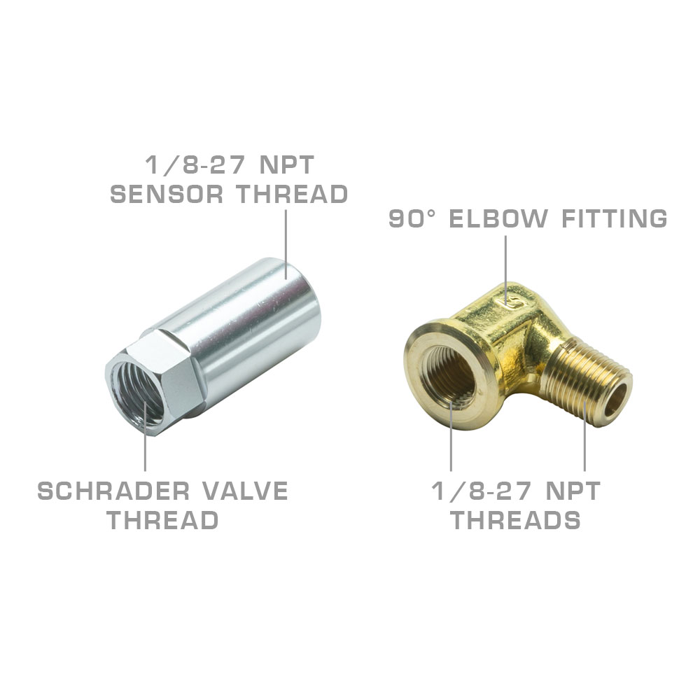 GlowShift Fuel Rail Thread Adapters for Chevrolet GM LS Engines make it easy to install a 1/8-27 NPT fuel pressure sensor without major modifications. Add the sensor directly to the fuel pressure test port on the fuel rail and avoid any need to remove the Schrader Valve at the same time. This GM fuel rail adapter has a 1/8" NPT Female to Male 90 Degree Elbow and a -4 AN Fuel Rail Adapter fitting. Each GM Fuel Rail Schrader Valve Adapter is designed for GM cars and trucks equipped with an electronic fuel pressure test port. Install to virtually any Chevy LS1, LS2, LS3, LS6, LS7, LS9 or LSA engine.