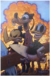 3 Amigos by Damian Fulton Surf Monster Donald Duck Goofy Fine Tattoo Art Print