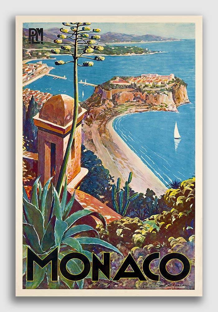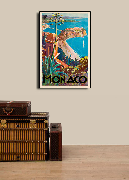 This great Vintage Style Travel Poster shows a coastal scene and the beach of monaco.