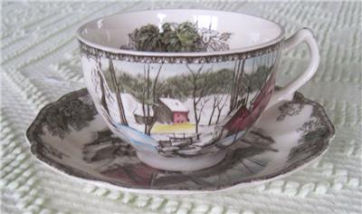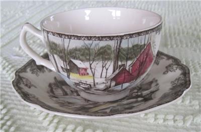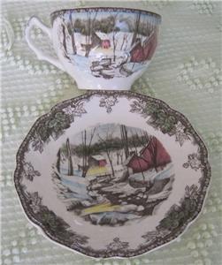 This auction is for eight Johnson Brothers Friendly Village cups and saucers in excellent condition, made in England.