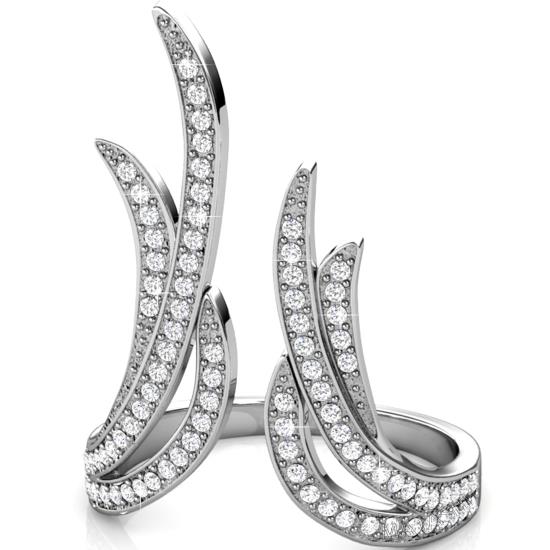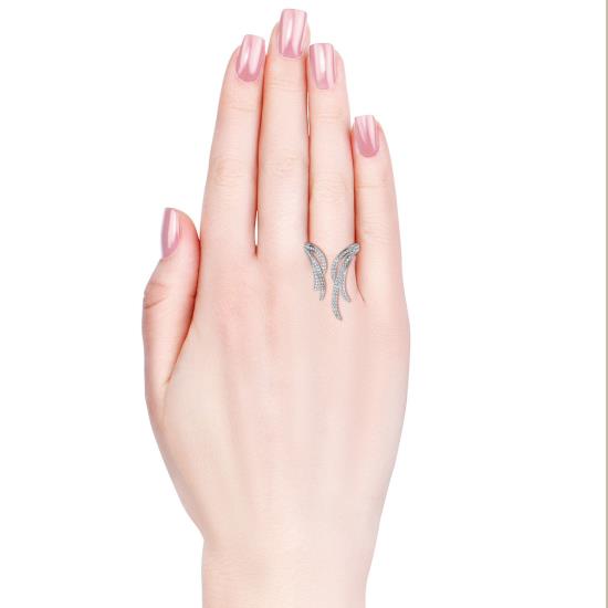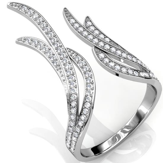 Each of our ladies’ rings features an 18k white gold plating fitted with beautiful clear crystals that give it a stunningly unique shine with every turn. This gold ring features an open side that makes it truly original, allowing it to adorn the finger with comfort and stylish grace.