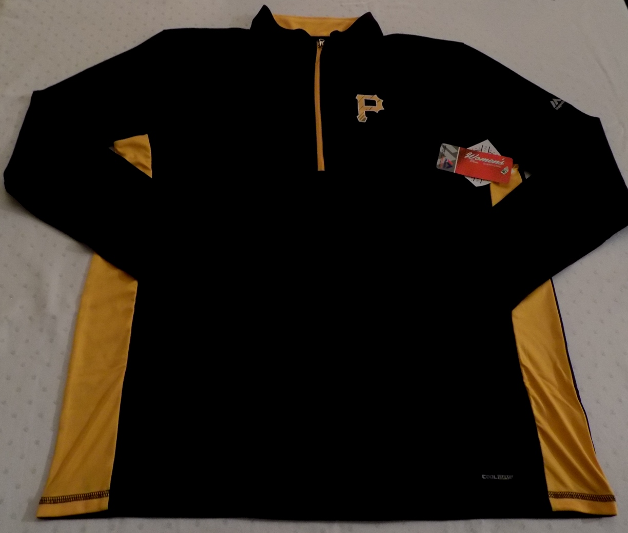 This item for sale is a brand new MLB licensed Ladies Pittsbugh Pirates Half Zip Pullover Cool Base Jacket that features: