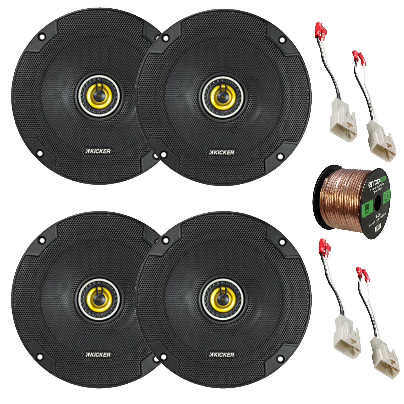 Two Pairs (QTY 4) Of Kicker CSC65 CS Series 6.5" 300 Watt Max Power 4 Ohm 2-Way Coaxial Speakers Bundle Combo With 50 Feet 16 Gauge Speaker Wire, 2x Speaker Connector for Select Toyota Vehicles