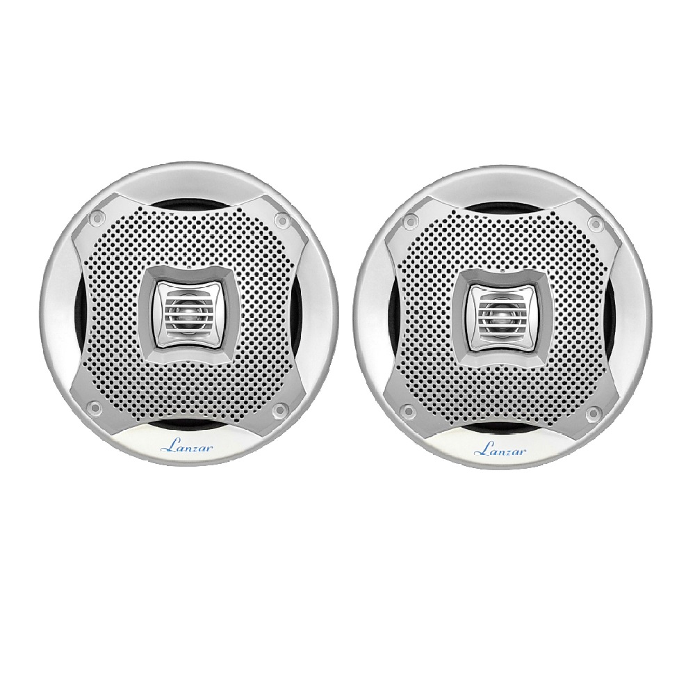 Lanzar's Mariner series of speakers are waterproof and designed for use in your boat, on the dock, by the pool, or simply mounted outside. They're designed with a water-resistant construction to keep the rust out. The AQ6CXS includes two silver 6.5' full-range speakers suitable for marine use. They're rated at 400 watts for big power. The 1' high temperature Kapton voice coil accurately reproduces low and mid-range frequencies, while the 0.5' superior dome tweeter hits the high frequencies. The molded ABS plastic basket keeps your sound distortion-free. Package includes custom grills, mounting and installation hardware. Color: silver.