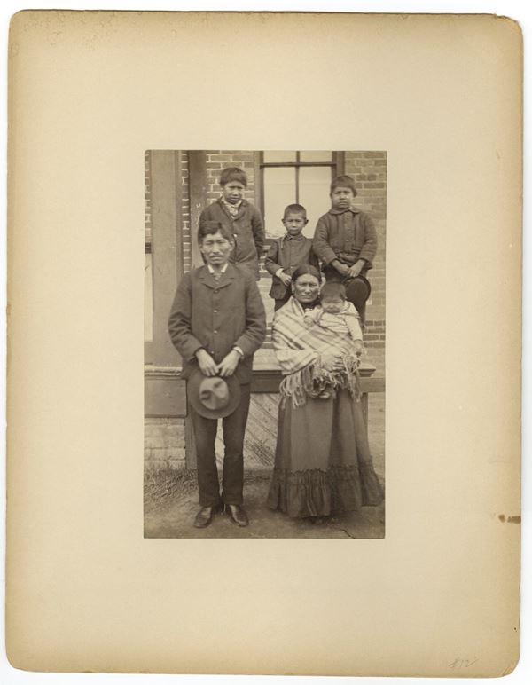 Sioux Indian Family - Scarce Oversized 19th Century Mounted Albumen Photograph. Photograph measures approximately 4.5 x 7" mounted to a larger board 9.25 x 12".