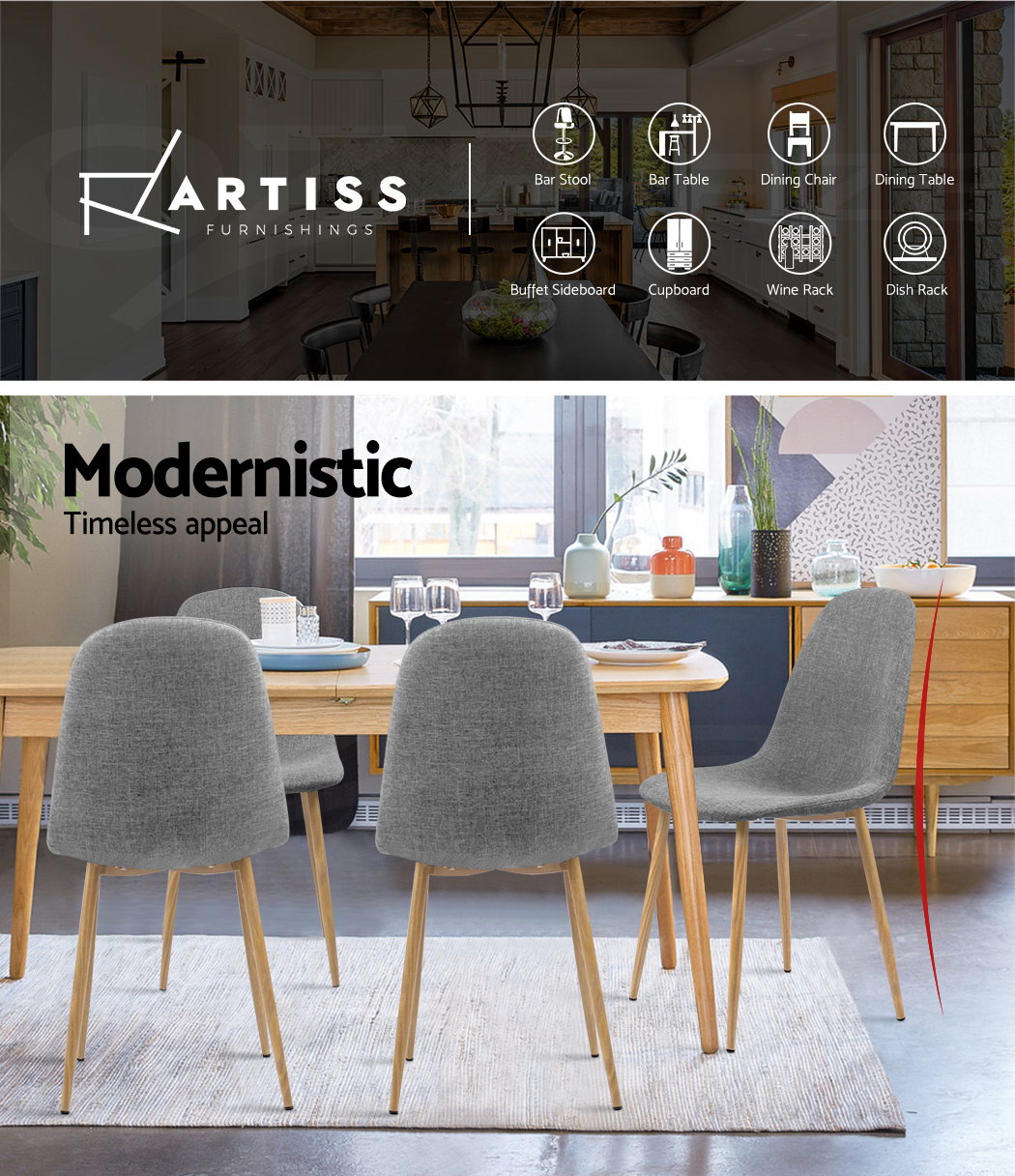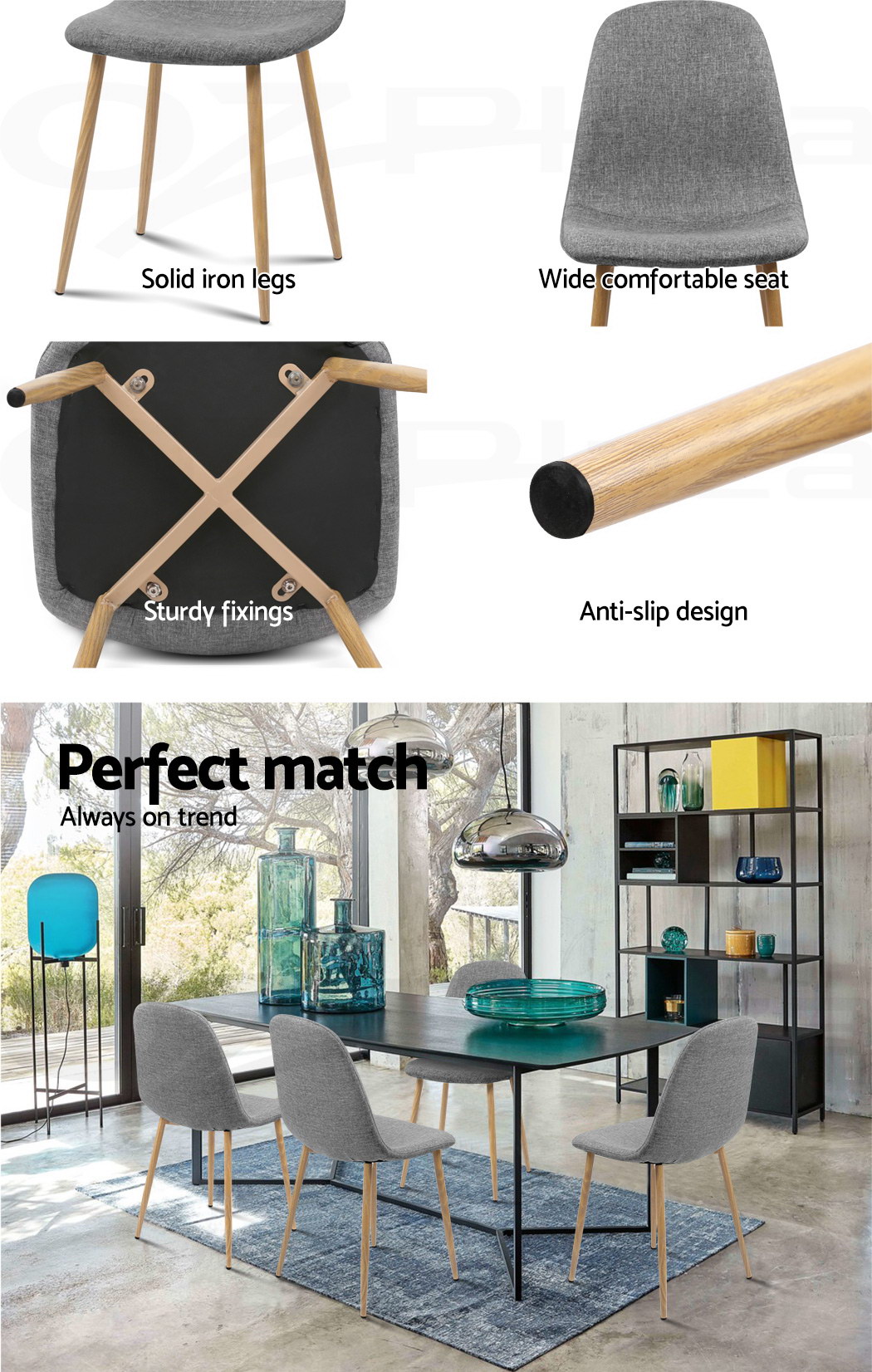 Give your dining room a modernistic makeover with our fine selection of dining chairs. They come with soft faux linen fabric upholstery, wide comfortable seat, sturdy iron legs, quality fixings and designed with neutral hues to match your current décor. Not least, they are uber comfortable so that you can enjoy your meals more and less about your seating quality. Better still, all the dining chairs include anti-slip floor protectors to keep your pristine floor scratch-free at all times.