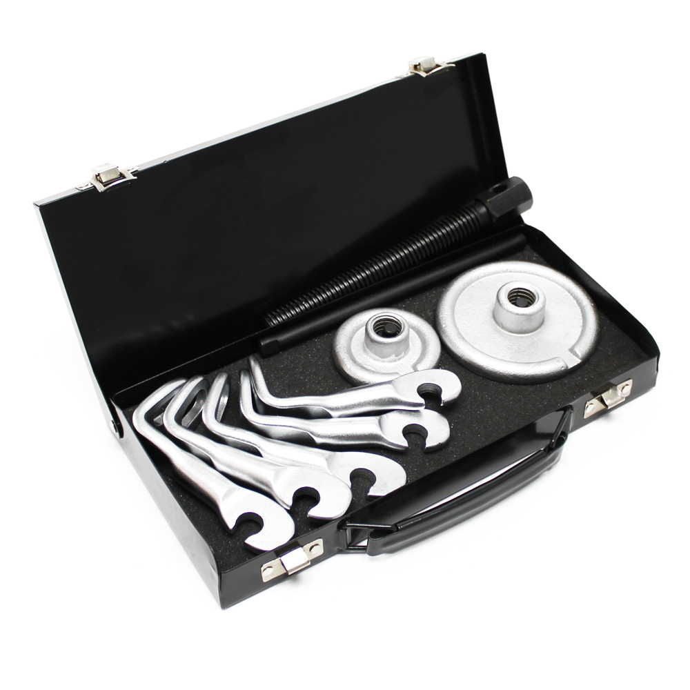 Die gehärtete Abdrück-Spindel ist mit einem Gleitgriff versehen zum bequemen Handling des Werkzeuges im Kfz-Bereich.