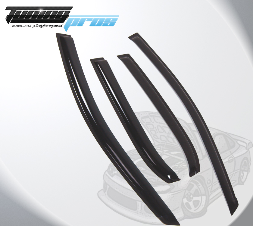 This vent visors are the most popular accessory for all vehicles. Made of reinforced acrylic in smoke tinted color. It can help to reduce heat buildup in parked vehicles by allowing air in when partially open. The vent visor keeps rain out and lets fresh air in vehicles. Easy installation with approved tape. Custom made fit each model (Please check compatibility table on this listing). Each sold for One complete set. Coupe models (2 Door/ Hatchback) contains 2 vent shades visors. The Sedans, wagons and SUVs contain 4 vent shades visors (Please check on listing title and picture about 2pcs or 4pcs visor for this listing). Spec & Features: