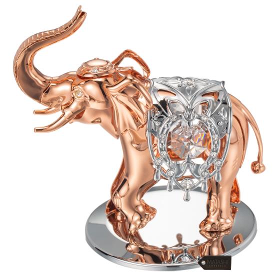 Rose Gold and Silver Color Crystal Studded Elephant Ornament by Matashi
